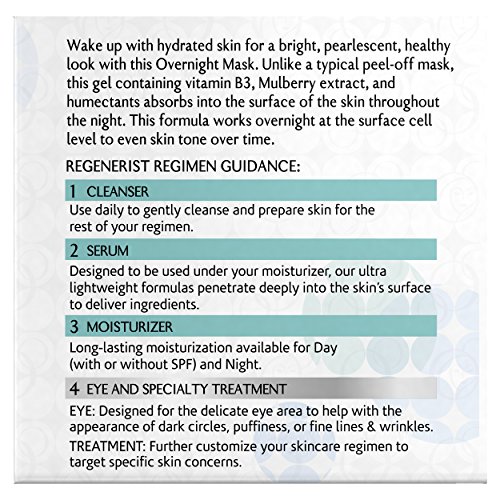 Wake up to radiance with Olay regenerist luminous overnight mask. Unlike a typical peel-off mask this gel-based mask absorbs into the surface of the skin throughout the night revealing bright pearlescent-looking skin. Formulated with vitamin b3 mulberry extract and humectants it helps to brighten and even skin tone over time. Hydrate your skin while you sleep and try Olay regenerist luminous overnight mask.Feature