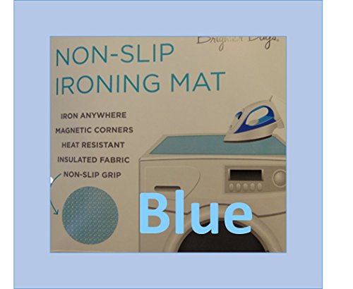-. Binding : Kitchen -. Brand : Brighter Days -. Color : blue -. EAN : 0651896496691 -. Feature : This is a Brighter Days Non-Slip Ironing (Blue) / 27 -. IsAutographed : 0 -. Label : Brighter Days -. Manufacturer : Brighter Days -. MPN : B01MPZYXN6 -. PackageQuantity : 1 -. PartNumber : B01MPZYXN6 -. ProductGroup : Home -. ProductTypeName : HOME -. Publisher : Brighter Days -. Studio : Brighter Days -. Title : Blue Brighter Days Non-Slip Ironing Mat magnetic corners heat resistant insulated fabric protects counter tops iron anywhere store on side of washer or dryer (blue) -. UPC : 651896496691