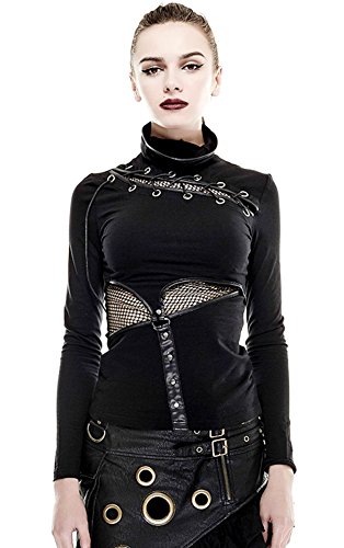 -. Title : 口元まで覆うマスクスタイルとシースルーメッシュが特徴的なアシンメトリーデザイン長袖Tシャツ/カットソー スチームパンク ブラック レディース M-Lサイズ T432BKFM