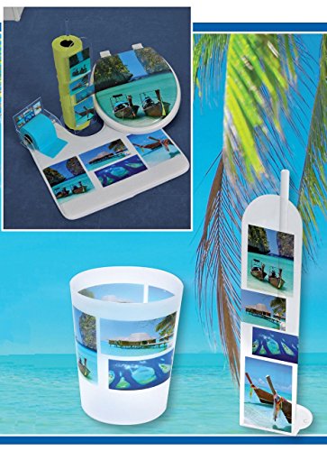 EVIDECO Printed Microfiber Bath Toilet Contour Rug Mat PARADISE Blue 17"W X 20"L