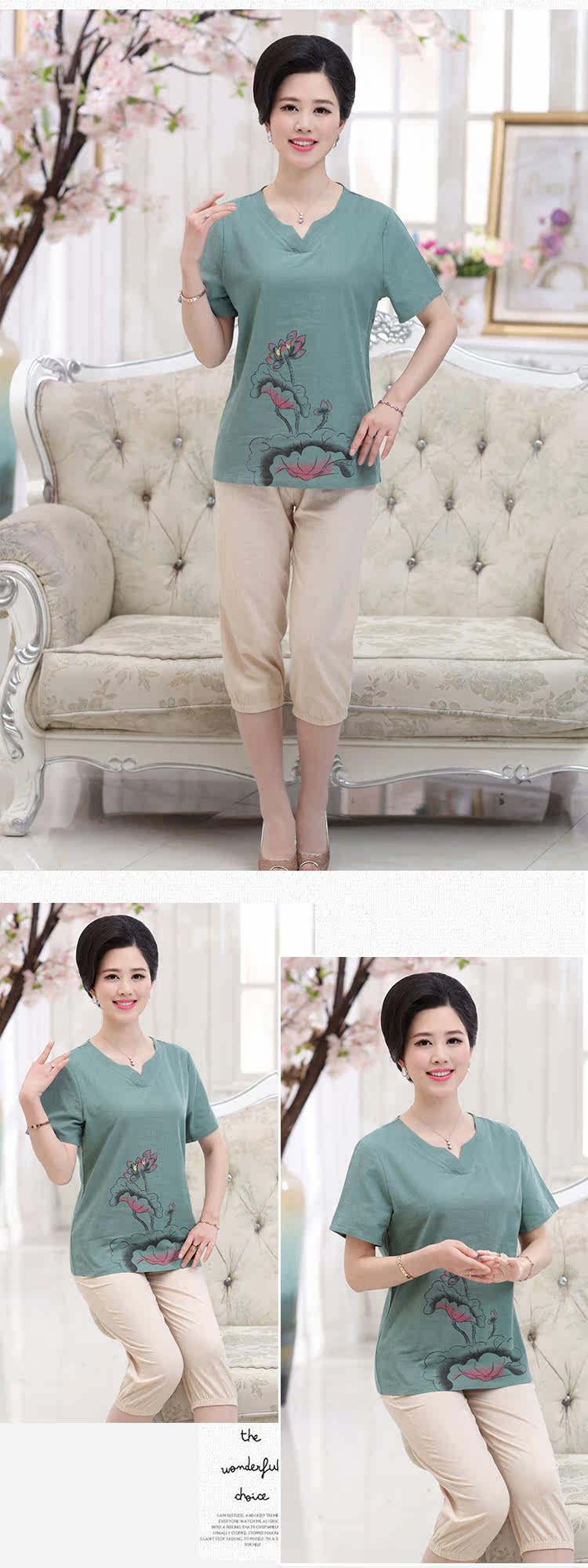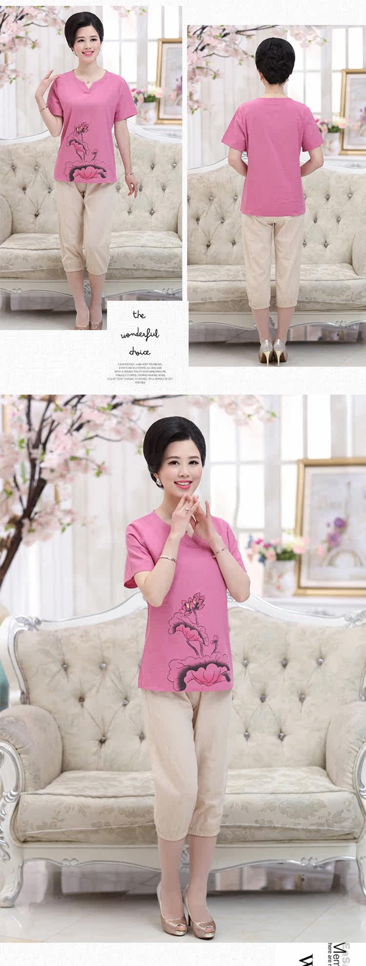 中老年女装夏装套装40-50岁妈妈装T恤裤子两件套中年女装短袖套装
