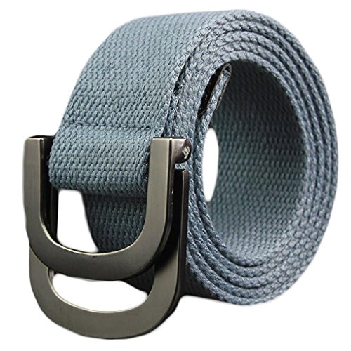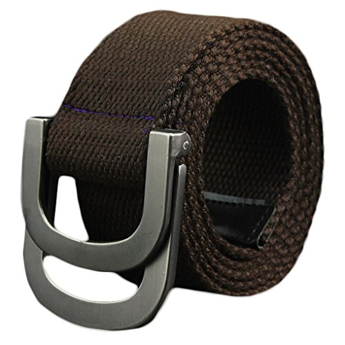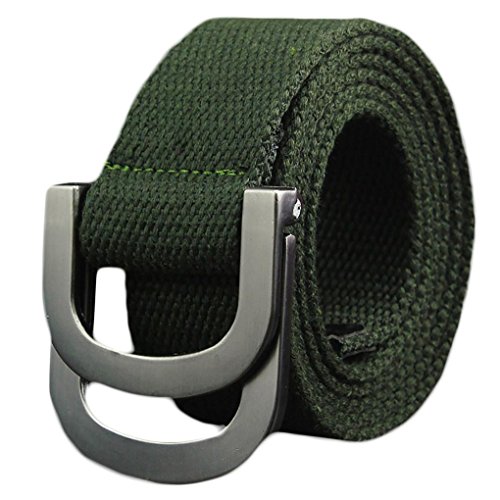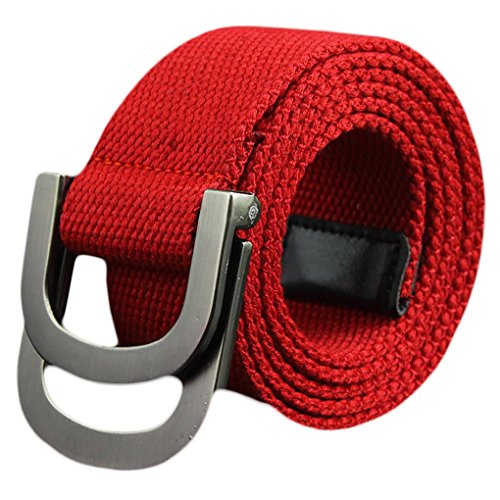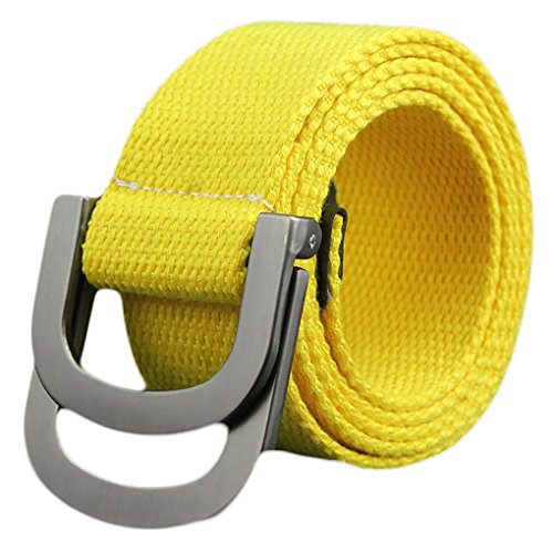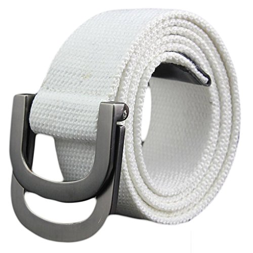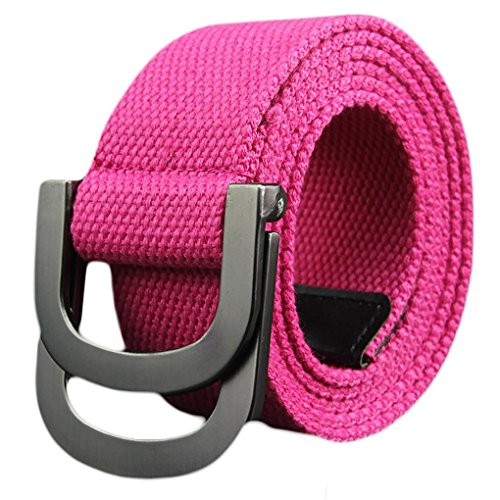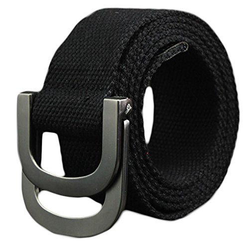 Webbed belt made with Canvas and zinc alloy metal buckle. Double ring, no holes, easy to adjust length and fasten. Wearer can adjust the belt to the exact size needed. Great match with any uniforms. Great for outdoor sports. Unisex style, suitable for both men and women.