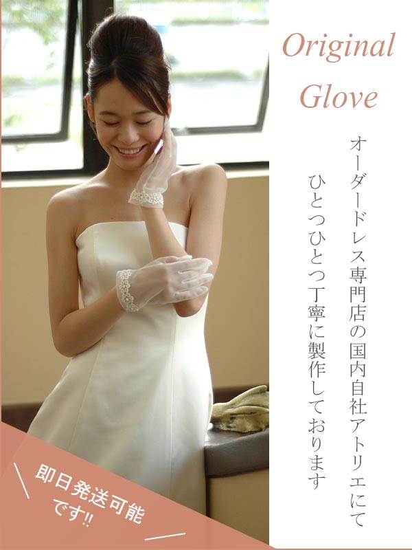 | グローブやレースの生地は繊細なものですので、場合によっては少しのひっかかりなどでも、糸ひけなどが発生する場合もございます。お取り扱いに気をつけてください。 |