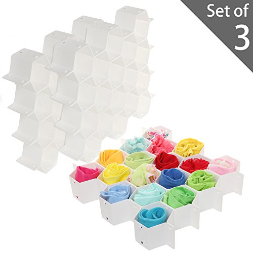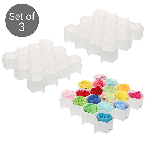 MyGift Set of 3 White Plastic Honeycomb Drawer Storage Organizer Divider for Socks & Underwear