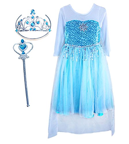 -. Title : Girls Elsa Costume Dress Snowflake Fringe Princess Tiara, Wand Set Halloween