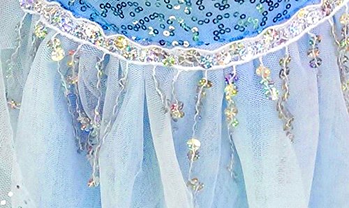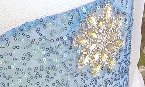 -. Feature : (4) Height: 3.9 ft / Length: 32 inch (without cape) / Bust: 22 inch / Sleeve length : 15.5 inch / Shiny snowflake sequin-fringe dress set for girls. With sequin-sheer cape. / Dress with cape(1), Tiara(1), Wand(1) / For party occasion, birthday gift, halloween, christmas