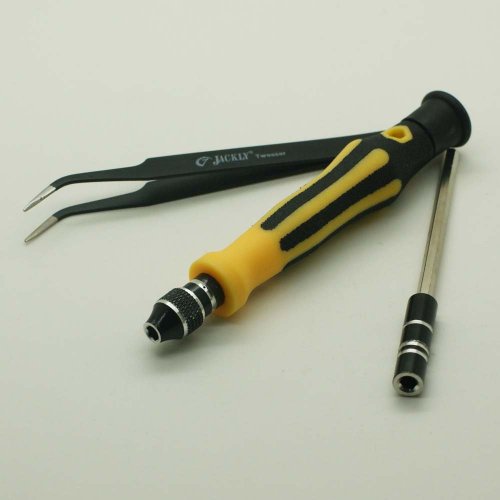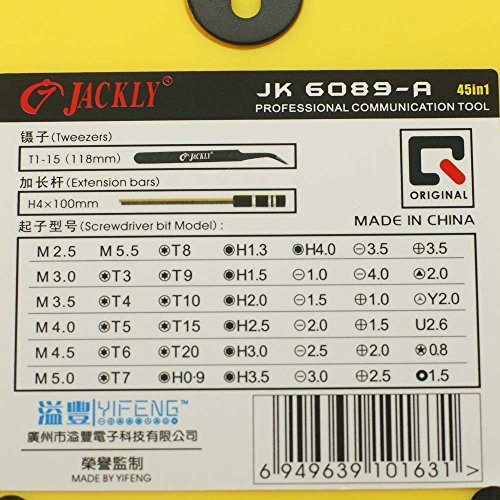 It contains a Tweezer, a Handle, an Extension Bar and 42 commonly used bits.
