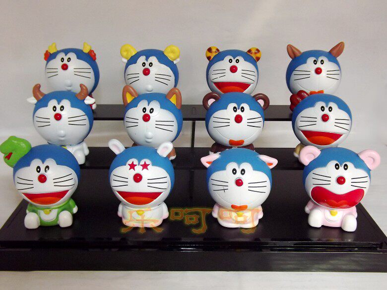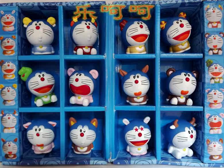 B款12生肖叮当猫(空心) 全套12个,高约6厘米,塘胶材质,彩色礼盒装