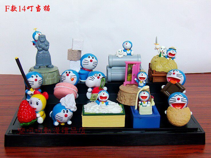 F款14叮当猫 一套14个公仔,高约3--7厘米,PVC材质,彩盒装
