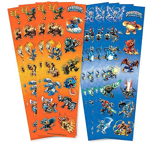 -. Feature : Our Skylanders Stickers feature some of your favorite characters, including Spyro, Pop-Fizz and P.R.Ism Break. / Each sticker strip measures 6 5/16" x 1 7/8" and contains 14 stickers each. / Available in packs of 8 / Guaranteed to make your guests happy even after the party ends!