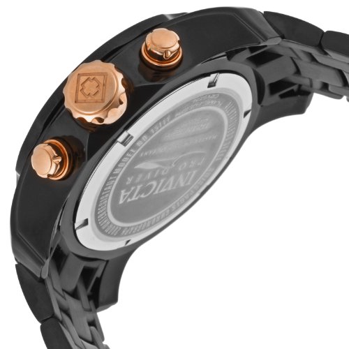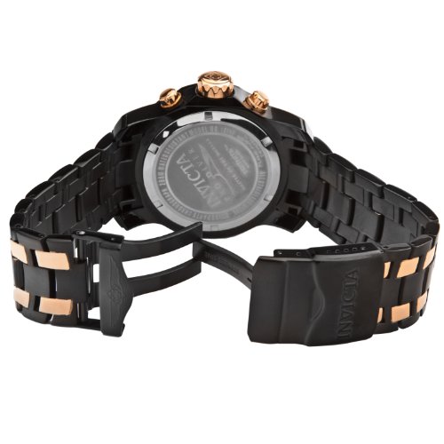 -. Binding : Watch -. Brand : Invicta -. Color : black -. Department : mens -. EAN : 0886678184316 -. Feature : Swiss quartz movement / Flame fusion crystal; black ion-plated stainless steel case and bracelet with 18k rose gold ion-plated stainless steel inserts / Chronograph functions with 30 minute, 60 second and day of the week subdials; magnified date window at 4:00 / Black carbon fiber dial with rose gold tone and white hands and hour markers; luminous; unidirectional black ion-plated stainless steel bezel with rose gold tone top ring / Water resistant to 660 feet (200 M): suitable for recreational scuba diving -. Label : Invicta -. Manufacturer : Invicta -. Model : INVICTA-15111 -. MPN : INVICTA-15111 -. PackageQuantity : 1 -. PartNumber : INVICTA-15111 -. ProductGroup : Watch -. ProductTypeName : WATCH -. Publisher : Invicta -. ReleaseDate : 2014-01-03 -. Studio : Invicta -. Title : Invicta Men's INVICTA-15111 Pro Diver Analog Display Swiss Quartz Two Tone Watch -. UPC : 886678184316