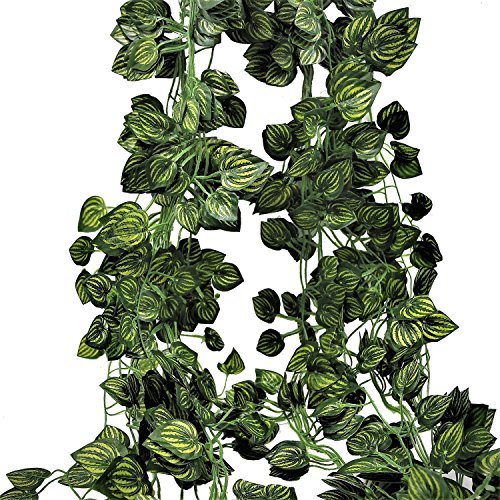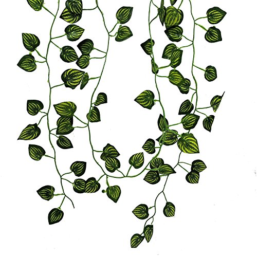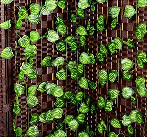 Fake Vines 80 Leaves Plant Vines Decorative Vines Garden Vines Hotels ,Offices and Home Cover Decor 12 pcs Artificial Hanging Plants Silk Green Leaf Garlands (Watermelon leaves)