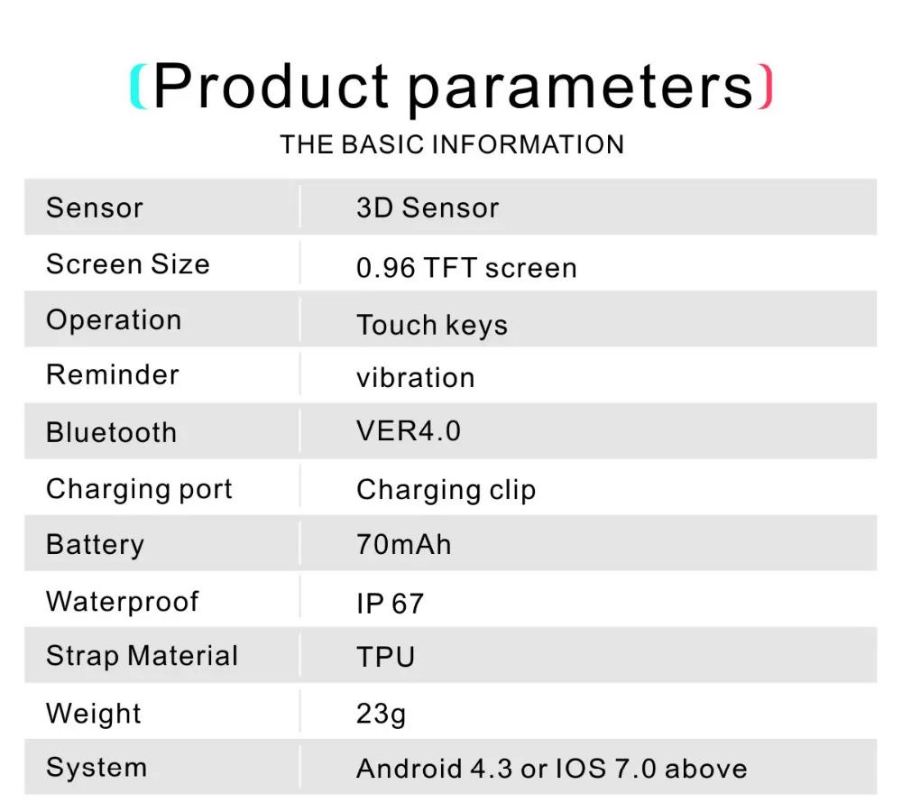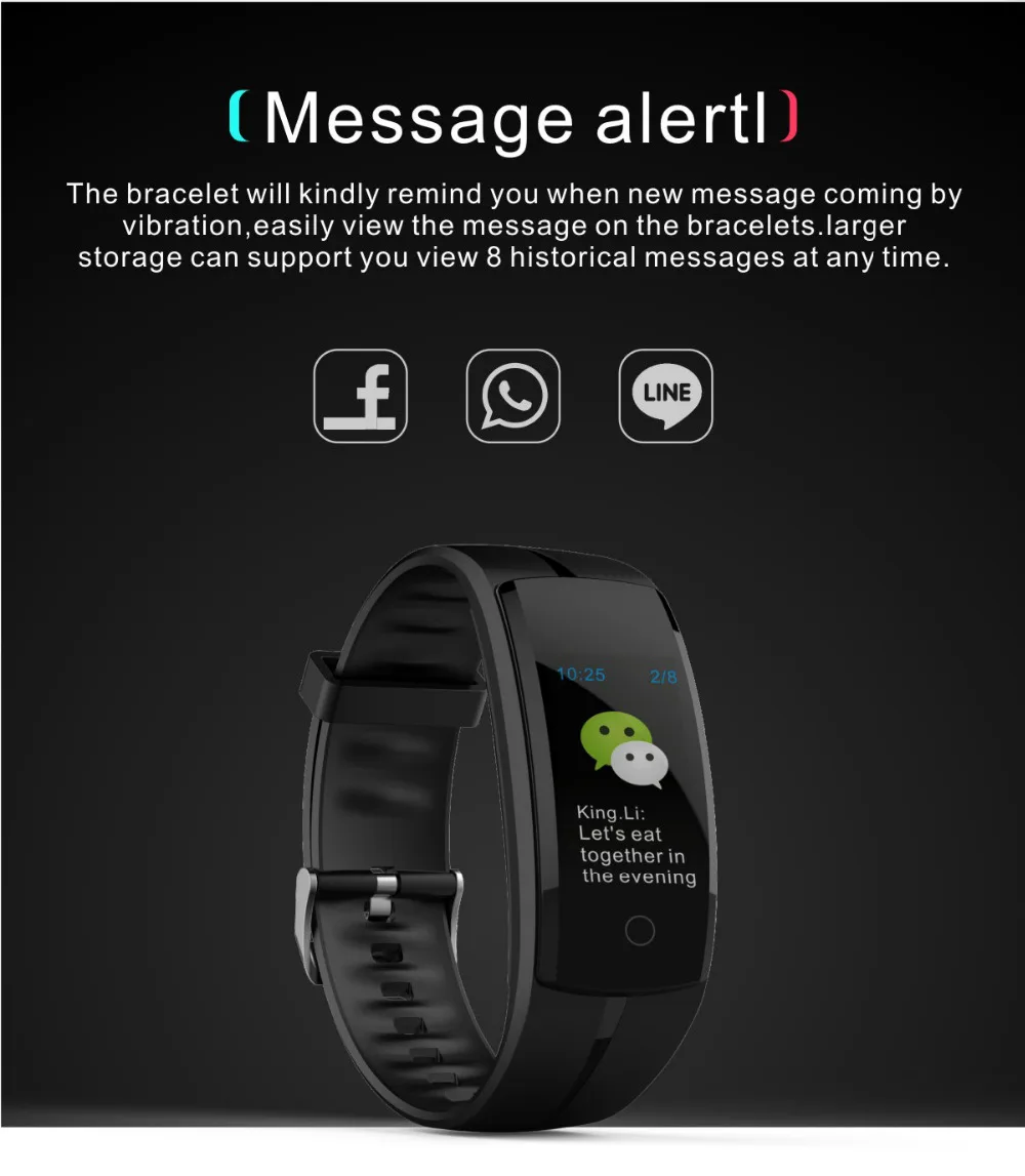 Function:Blood Pressure,Passometer,Sleep Tracker,Push Message,Blood Oxygen,Heart Rate Tracker,Alarm Clock,Remote Control,Activity Tracker,Fitness Tracker,Social Media Notifications,Message Reminder,Call Reminder