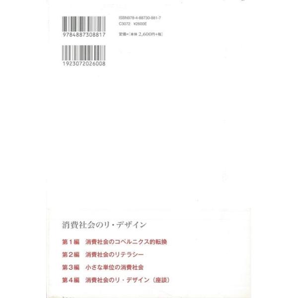 【商品基本情報】 商品名称:消費社会のリ・デザイン 著者/出版社:水野 誠一 他編大学/水野 誠一 他編大学 初版発行日:2009/02/20 サイズ:A5判 ページ数:234 ISBN/JAN:9784887308817/4528189553491