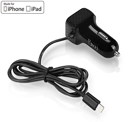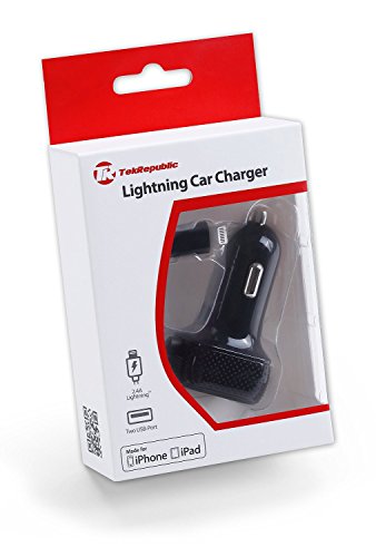 Tek Republic TCC-300 Apple MFi Certified 6.6 Amp Lightning Car Charger for iPhone, iPad and iPod – with Built-in Apple Certificated 3.3 feet / 1 meter Lightning cable