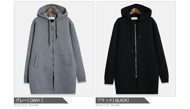 シンプルな無地でマッチし易い、定番ロングパーカーです。