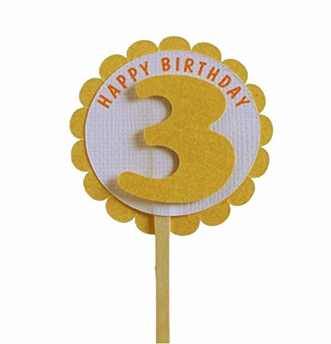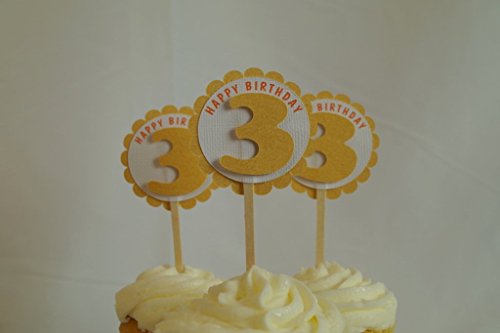 All About Details Shimmer Gold 3rd Birthday Cupcake Toppers, Set of 12