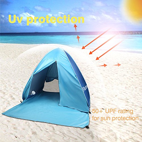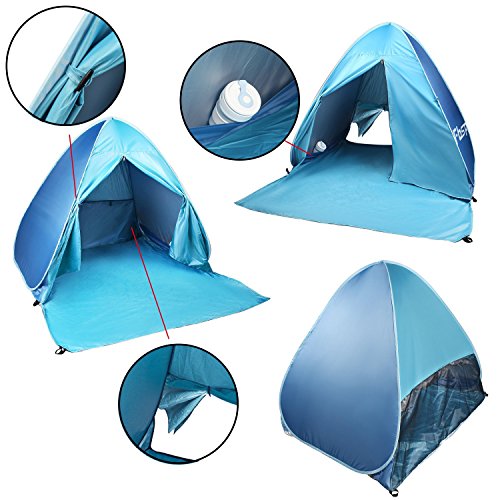 Fb-Sport Portable Light-Weight Beach Tent, Automatic Pop-up Sun Shelter Umbrella, Outdoor Cabana Beach Shade with UPF 50 Plus Sun Protection, Blue