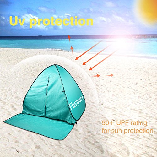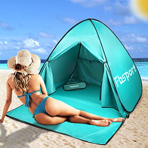 Fbsport Portable Lightweight Beach Tent ,Automatic Pop Up Sun Shelter Umbrella,Outdoor Cabana Beach Shade with UPF 50+ Sun Protection (cyan)