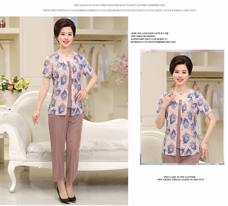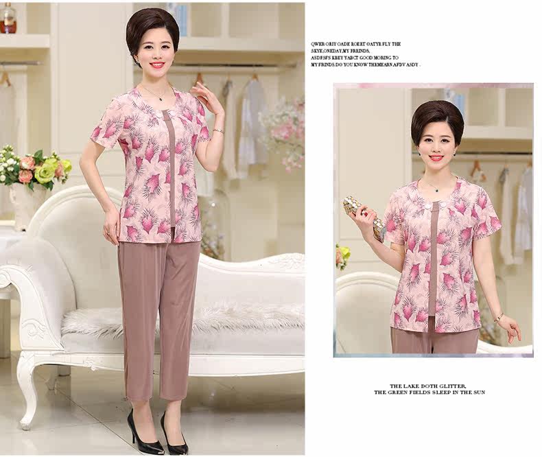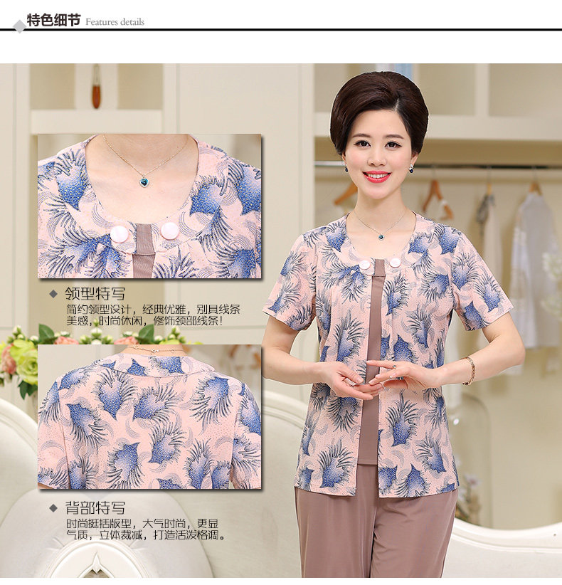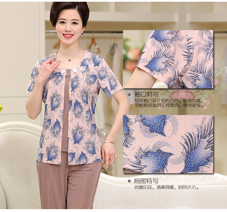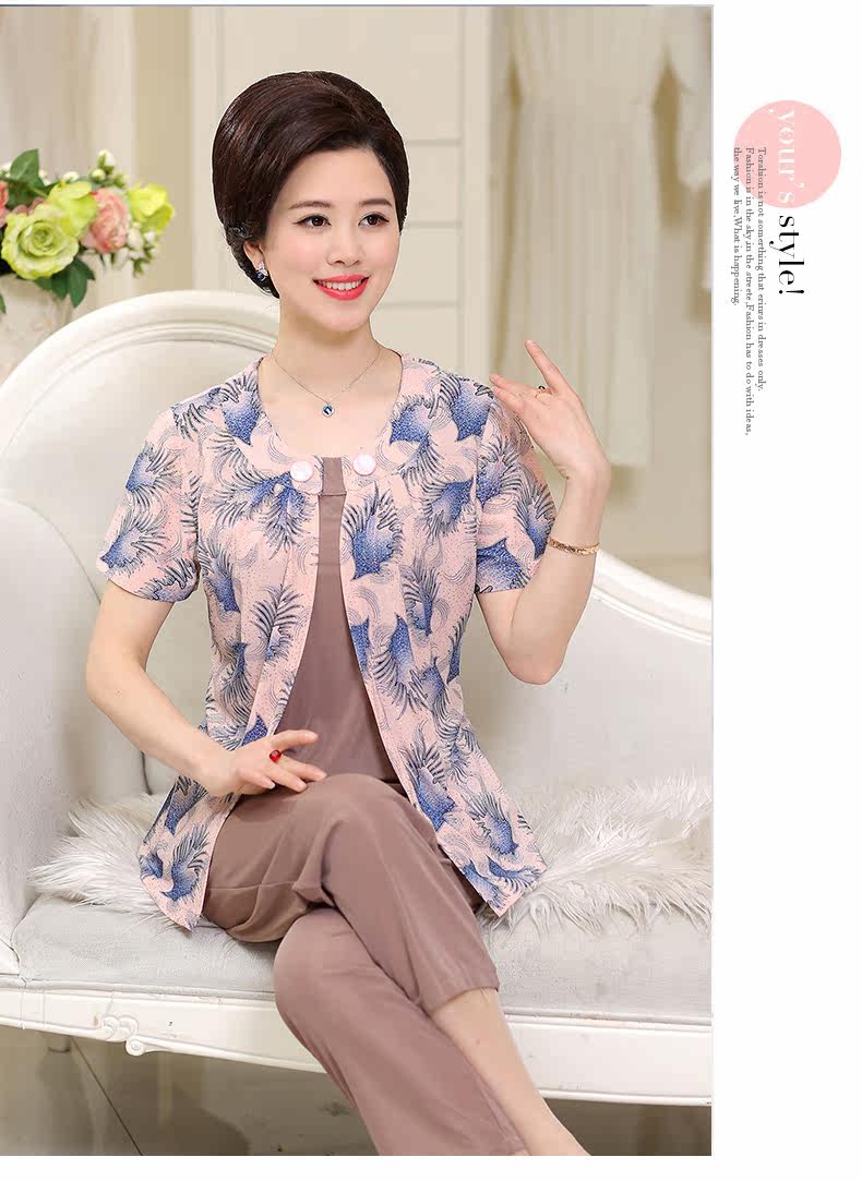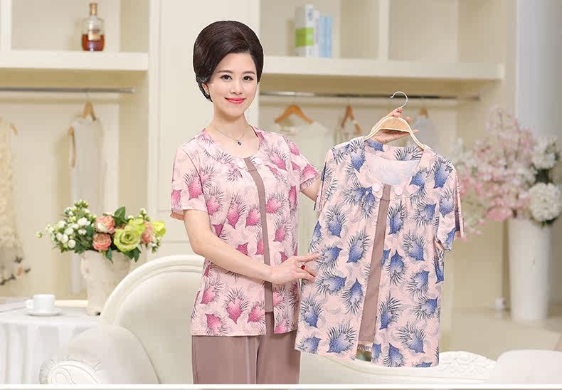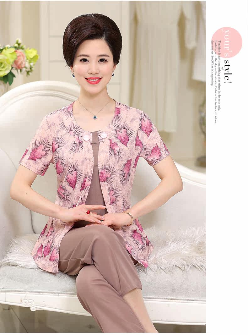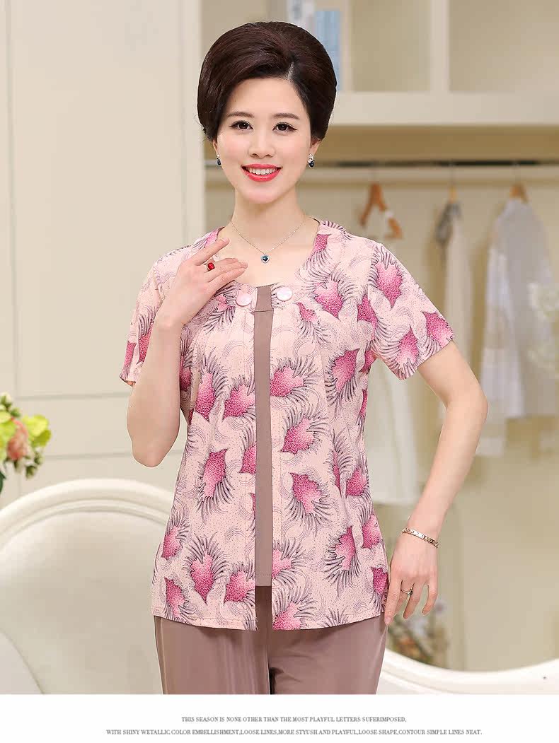 中年人女装夏季上衣40-50岁妈妈装夏装T恤中老年女装夏装短袖T恤
