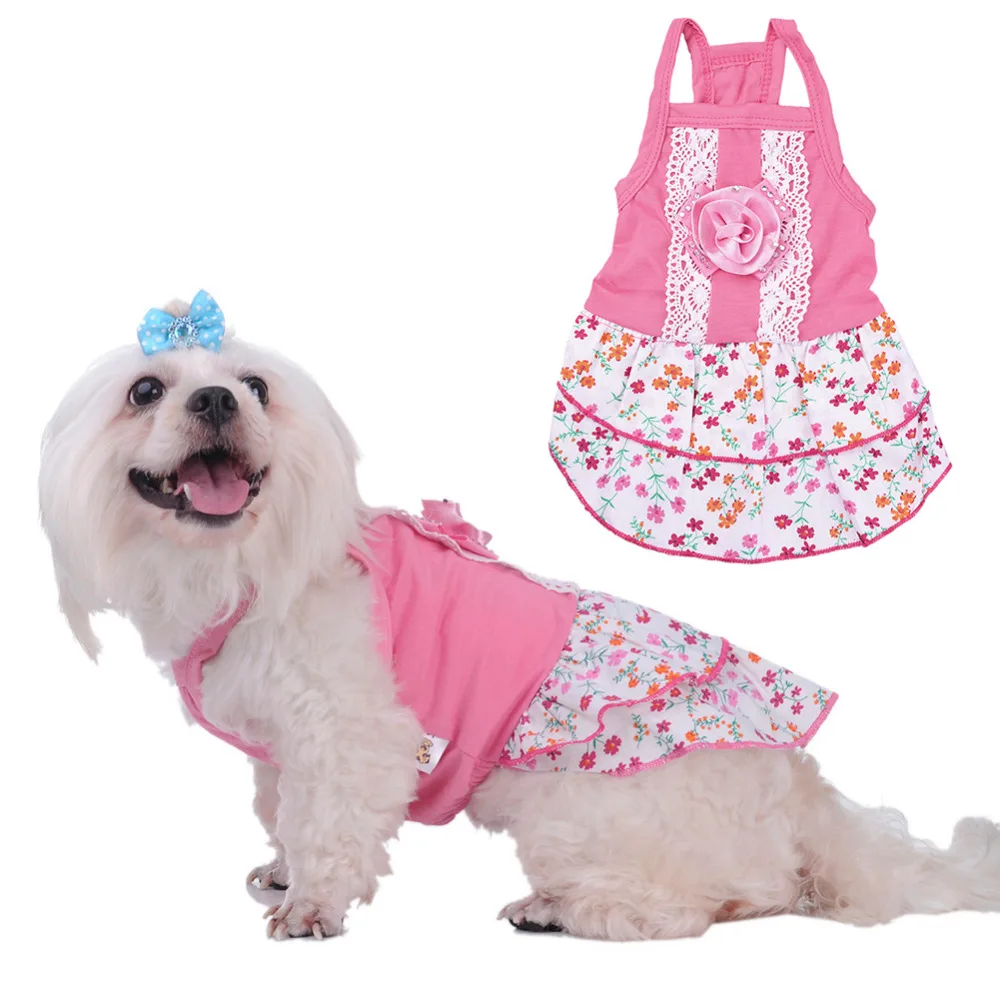 Item:Clothes for dogs,floret Cotton,dog cat Puppy Clothes Princess Lace