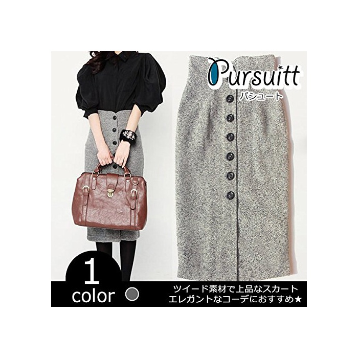 원본상품명: ハイウエスト ツイ?ドスカ?ト フロントボタン ひざ丈 ロング ボトムス 無地 大人 GREY,Sレディ?ス 上品 タイト ロングスカ?ト 秋 冬 春 フォ?マル カジュアル