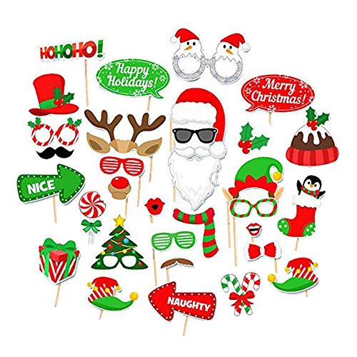 31PCS Christmas Xmas Santa Party Card Masks Photo Booth Props Mustache Supplies