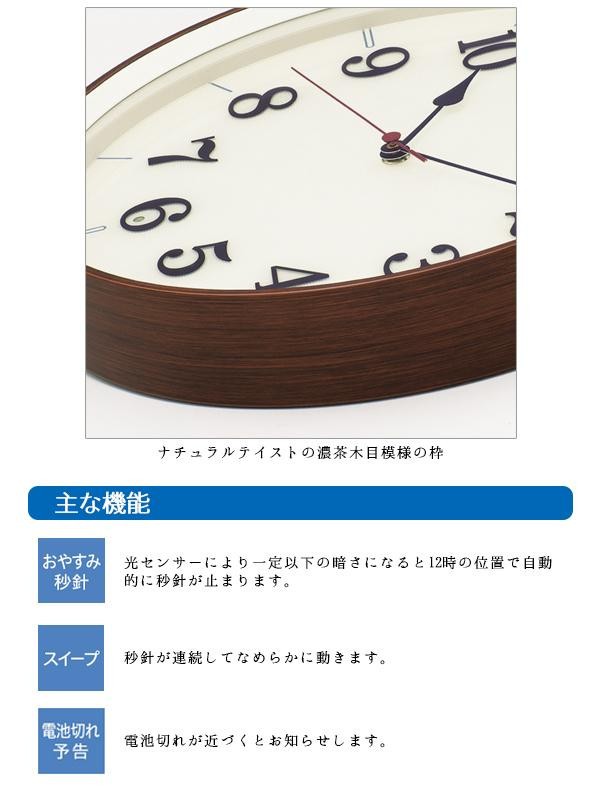 | シンプルで使いやすい電波クロック。ナチュラルテイストの濃茶木目模様のフレームが美しいデザインで、設置する場所を選びません。 |