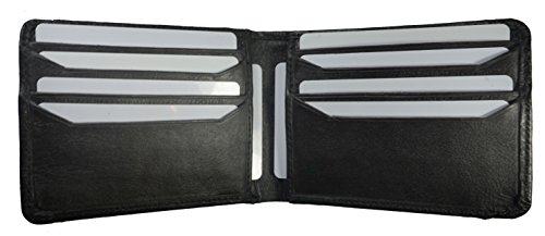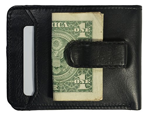 -. Feature : Lambskin Leather Bifold Slim ID Card Holder Front Pocket Black Men's Money Clip Wallet / Exterior: One ID Window and one CC slot, Metal Money clip. / Holds upto 11 credit card. / BiFold Flip Open Design. / Handcrafted Leather.