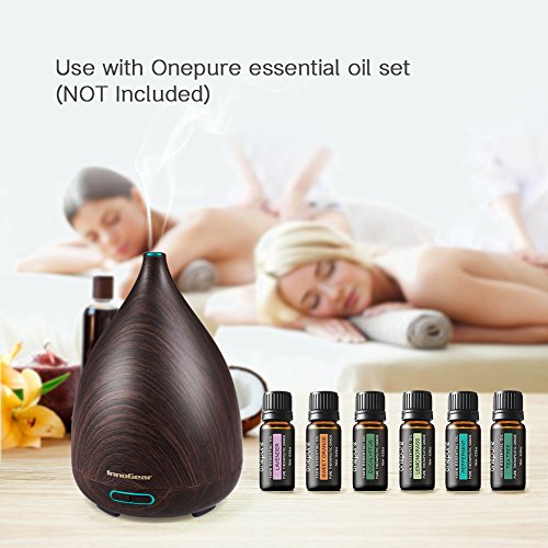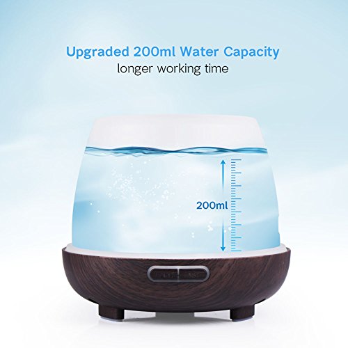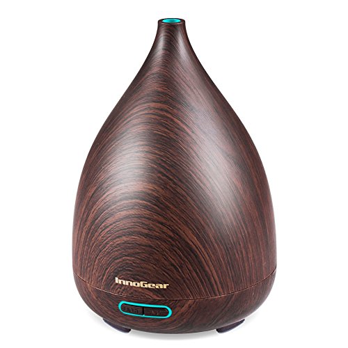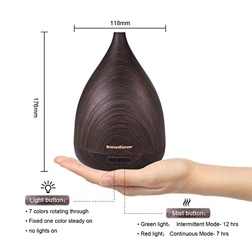 InnoGear 200ml Essential Oil Diffuser Wood Grain Vase-Shaped Ultrasonic Aromatherapy Oil Diffusers with Adjustable Mist Mode Waterless Auto Shut-off Humidifier and 7 Color Changing LED Lights for Home