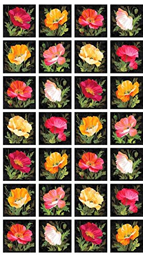 Full Bloom~Poppies Panel 23" x 44" Cotton Fabric by Northcott