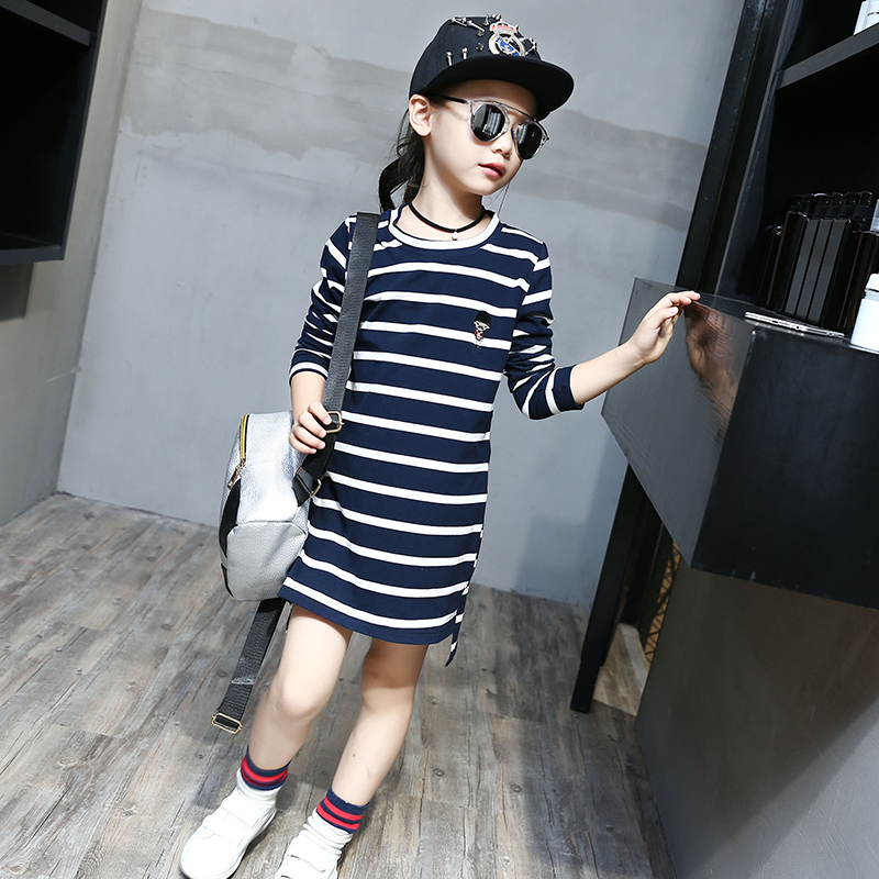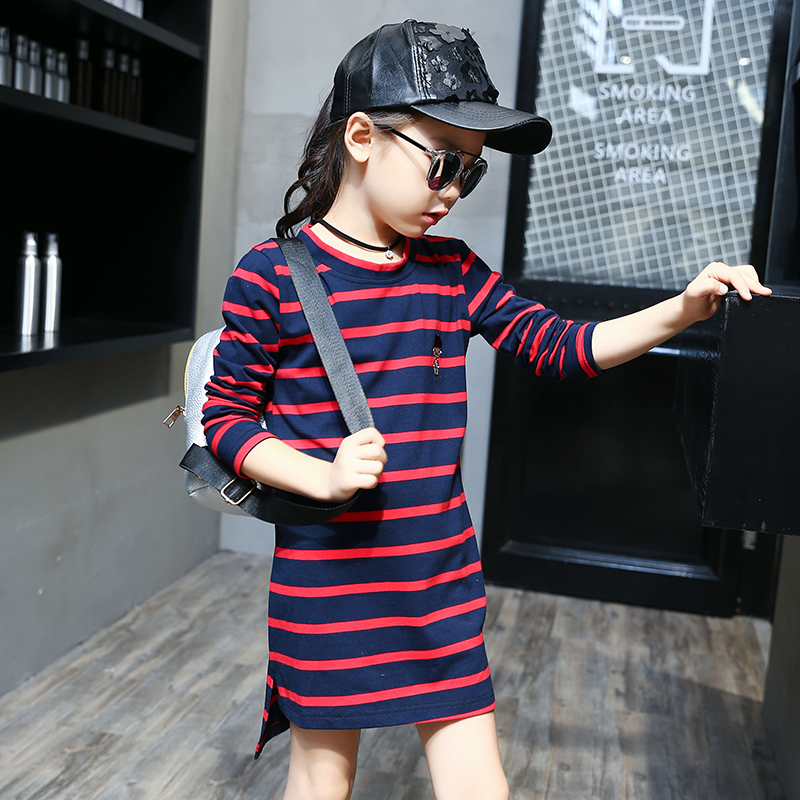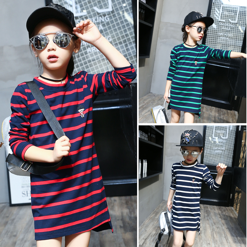 Girls Striped Dress Autumn Spring Kids Cartoon T-shirts Children Cotton Straight Dresses Girls O-neck Tops