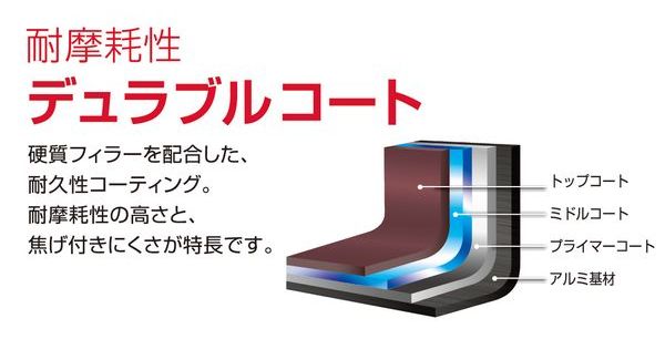 ●硬質フィラーを配合した耐摩耗性の高さと、焦げ付きにくさが特長の「耐摩耗性デュラブルコート」を採用。