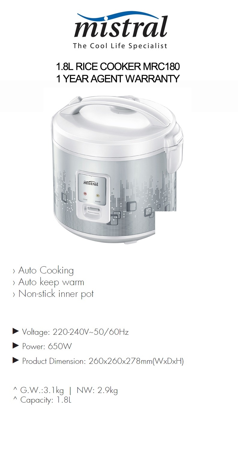 Auto Cooking Auto Keep Warm Compact Size 1.5mm Thick Non-Stick Inner Pot