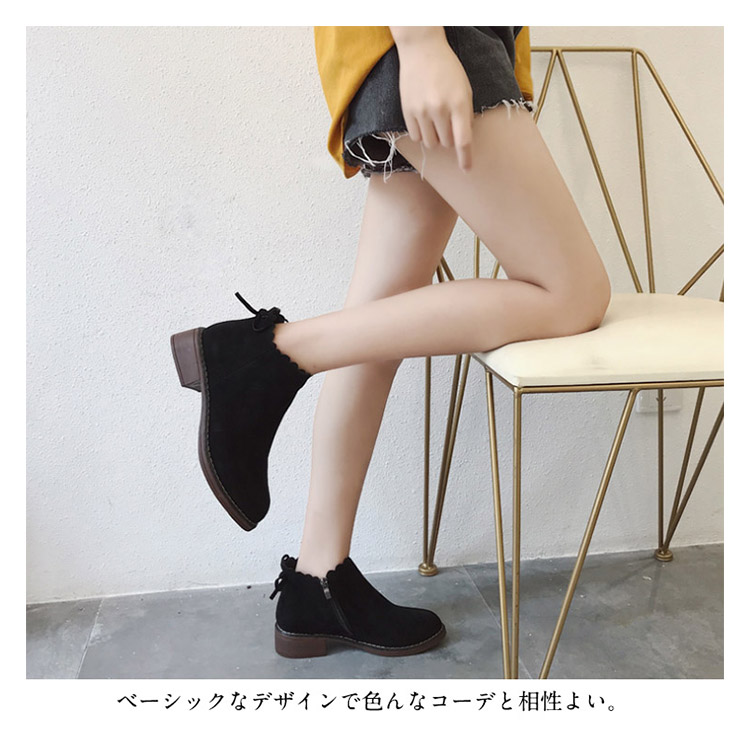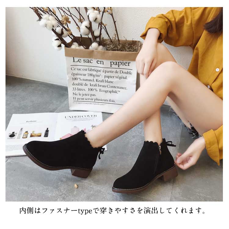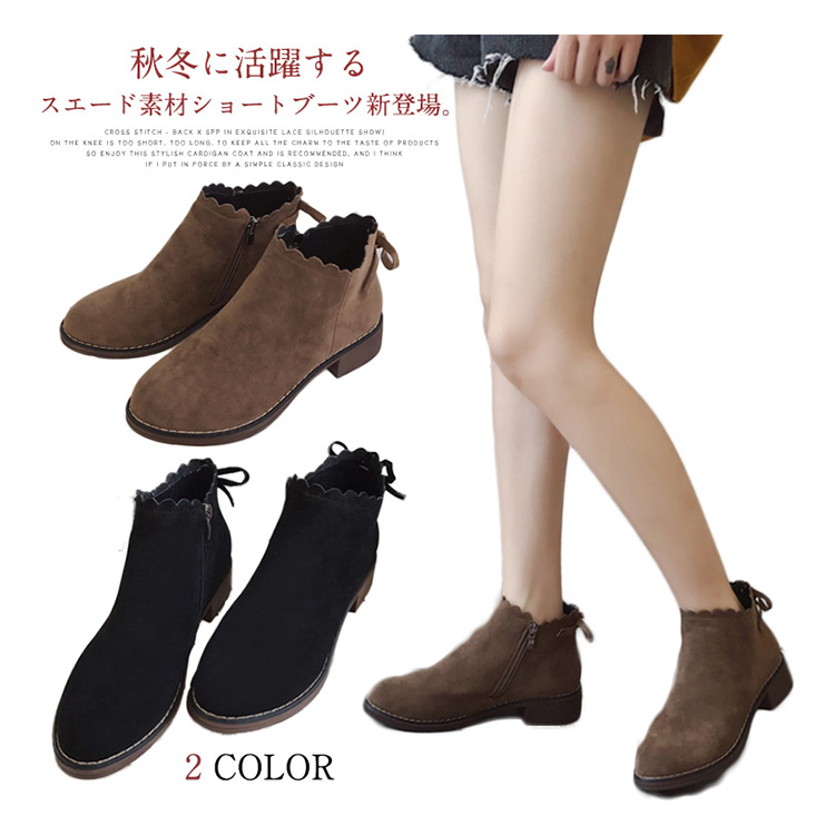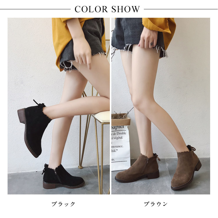 | 秋冬に活躍するスエード素材ショートブーツ新登場。ベーシックなデザインで色んなコーデと相性よい。内側はファスナーtypeで穿きやすさを演出してくれます。安定感のある太めのローヒールで、長時間歩いても疲れにくい!秋冬らしい落ち着いた人気の2カラー展開。 | |