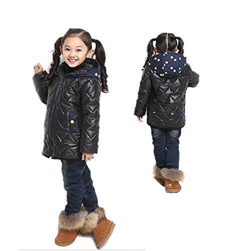 FakeFace Kids Girls Quilted Jacket Winter Warmer Padded Coat Hooded Long Hoodie Snowsuit