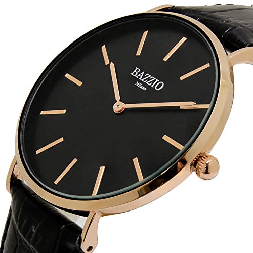 [배지《오》]BAZZIO 손목시계 쿼츠 가죽 벨트 레더 초박형 40mm 유니섹스 맨즈 레이디스 FAL50509G 블랙 로즈 골드 [병행수입품]