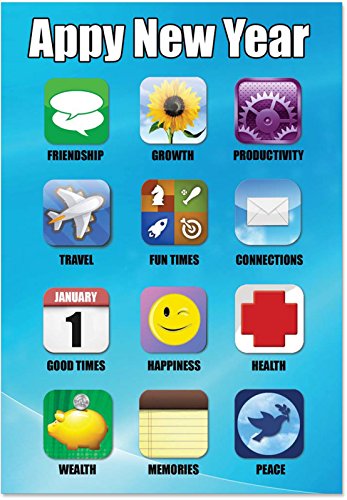 B1843 Box Set of 12 Appy New Year Funny New Year Paper Cards with Envelopes