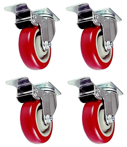 Caster Wheels Swivel Plate Stem Break Casters On Red Polyurethane Wheels 880 Lbs (4 inch with brake)