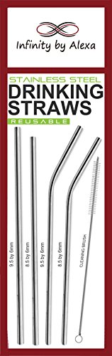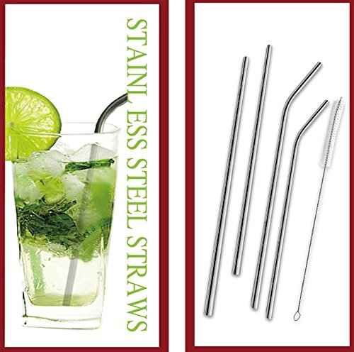 Stainless Steel Drinking Straws (Set of 4, Versatile sizes + Cleaning Brush) for 20/30 OZ Tumblers ,Fits all brands – RTIC, Yeti Straws, Tumblers Accessories, Tumbler reusable Straws