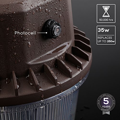Dusk-to-dawn LED Outdoor Barn Light (Photocell Included), 35W (250W Equiv.), 5000K Daylight Floodlight, DLC & ETL-listed Yard Light for Area Lighting, Wet Location Available, 5-year Warranty