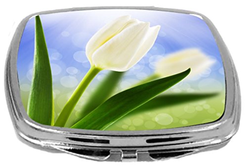 Rikki Knight White Tulip Macro on Beautiful Background Design Compact Mirror, 17 Ounce