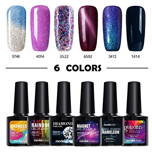 Modelones UV LED Gel Nail Polish Set Mix 6 Kind of Nail Varnish,Color Changing Cat Eye Sparkle Manicure Kit with No Magnet