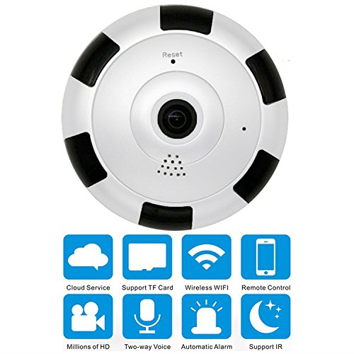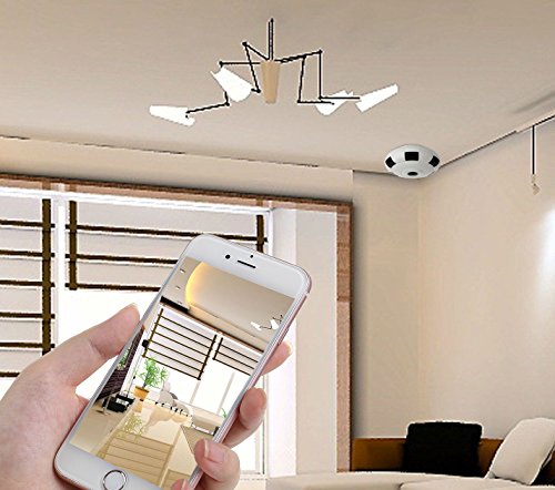 -. Feature : ✔360 degree full view 3D fish eye.It is a new technology with 1080P HD that support you to monitor scenes in multi-directional and get a clear video.Support night vision.Although at dark,you can also see anything clearly.This product can monitor all corner in your home or your office so that you just need to buy one.Save your money and effort.The design of color and shape make it easy to hide. / ✔Built-in speaker and MIC,two-way voice real-time communication,.It has comprehensive video function,such as automatic record,record-on alarm and audio record.It realizes real-time monitoring and recording.The record resolution includes standard-definition(VGA),high-definition(960P). / ✔This product supports cloud storage (with costs) and micro SD card (max 64G).Quick WiFi setup via IOS or Android Smart phone using supplied APP, Remote access to the camera on Smart phone. So you just need to download an app and can watch live video from your smart phone anytime and anywhere.Also,you can watch the saved videos on your phone. / ✔Multi-view mode choices.Full screen,split-screen mode,ect.What's more,you can choose a screen to take a picture and screenshot whenever and wherever. / ✔Enjoy powerful functions.It is suitable for family caring, security guarding,intelligent tracking, time with the beat, full name record abnormal dynamic, record baby growth, guarding your home security.Intelligent following, Instant shooting, Real-time abnormality detecting and recording, Instant end-to-end conversation, Barrier free communication, safeguard your family.