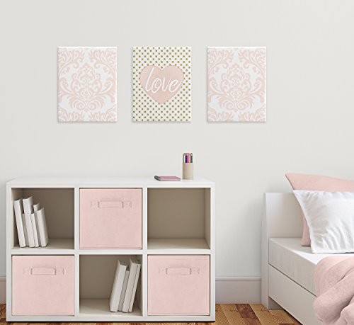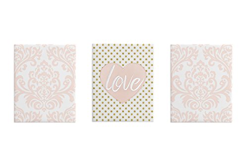 Blush Pink and White Damask Heart Wall Art Room Decor Hangings for Baby, Nursery, Kids and Childrens Amelia Collection by Sweet Jojo Designs - Set of 3