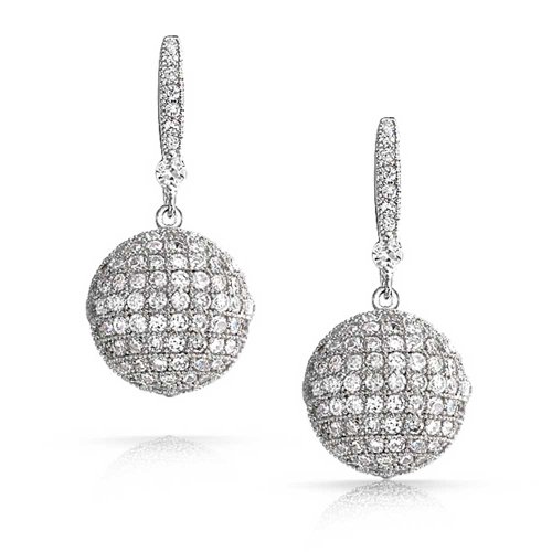 You are the Dancing Queen when you wear these disco ball drop earrings. These radical fashionable earrings have a dangling style with a ball that is akin to the great mirrored disco balls. Dance the night away while wearing these fresh drop earrings. These fab silver drop cz earrings will be a prefect addition to your party jewelry collection. So dont let the fashion fuzz catch you without a pair of these silver cubic zirconia disco ball earrings. So before you break purchase your disco ball earrings today