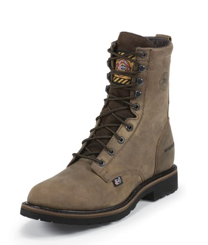 -. Binding : Apparel -. Brand : Justin Original Work -. Color : Brown -. Department : mens -. Feature : The wyoming waterproof steel toe is an 8-inch tall men's safety toe work boot with a steel toe that exceeds astm f2413-11, 175, c75 safety standards toe and the j-flex flexible comfort system insoles -. Label : Justin Work Footwear -. Manufacturer : Justin Work Footwear -. Model : WYOMING WORKER II WATERPROOF STEEL TOE-M -. MPN : WYOMING WORKER II WATERPROOF STEEL TOE-M -. PackageQuantity : 1 -. PartNumber : WYOMING WORKER II WATERPROOF STEEL TOE-M -. ProductGroup : Shoes -. ProductTypeName : SHOES -. Publisher : Justin Work Footwear -. Size : US -. Studio : Justin Work Footwear -. Title : Justin Original Work Men's Wyoming Worker Ii Waterproof Steel Toe Workboot