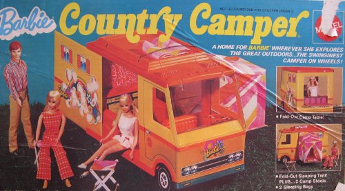 -. Feature : Barbie Country Camper is a 1970 Mattel Hawthorne production, made in USA. / INCLUDES: Country Camper w Slide Out Side Panel, Fold Out Sleeping Tent, Fold Out Camp Table, Tilt Up Windshield, Movable Steering Wheel, PLUS 2 Camp Stools, 2 Sleeping Bags, Kitchenette Unit, Rooftop Luggage Rack, & Instructions. / Intended for Barbie Doll & other 11.5" fashion size Dolls; NO DOLLS , NO Clothing, & NO Luggage Straps are included. Camper can be used with other size Dolls, as YOU Prefer. / For Ages 3+ Years. All the sizes, details & colors are provided to the best of my ability & may not be exact & may vary. / *Box approx. 19-1/2" X 11" X 9". For Box Condition see CONDITION NOTE or Email Seller for Details. *See below in PRODUCT DESCRIPTION!
