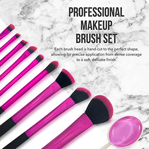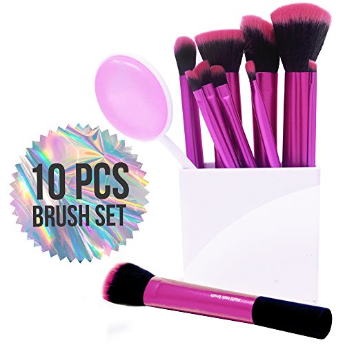 Vivace Makeup Brushes - 10 Synthetic Bristle Kabuki Cosmetic Brush Set - Professional Pink Korean Kit Great for Travel