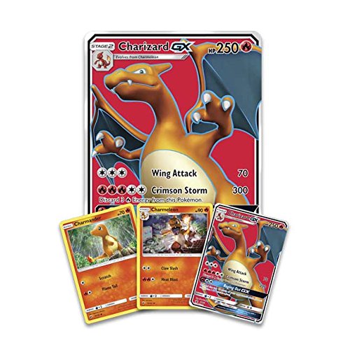 -. Feature : The charizard-gx premium collection includes 1 full-art foil promo card featuring charizard-gx, 1 Charizard collector's pin, 1 full-art foil oversize charizard-gx card, and a new Charizard coin / You will also receive 1 foil promo card featuring chameleon and 1 foil promo card featuring charmander / This also comes with 6 Pokémon TCG booster packs / You will also receive a code card for the Pokémon trading card game online